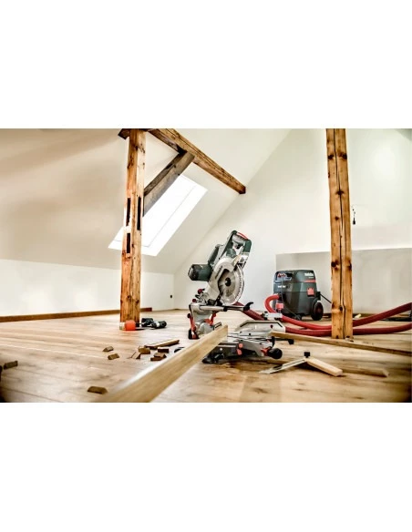 • Fonction radiale compacte pour des pièces larges jusqu’Ă 305 mm : pas d’espace nĂ©cessaire derrière la scie