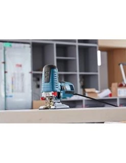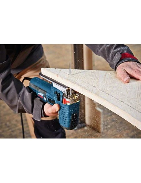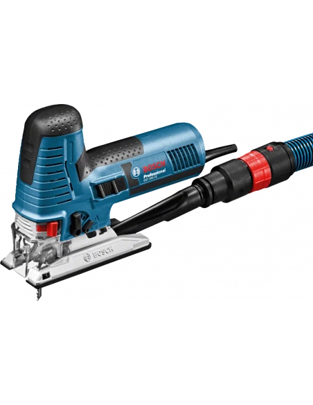 • La GST 160 CE Professional permet aussi de réaliser des coupes biaises et dispose d’une soufflerie, d’un éclairage LED, d’un mouvement orbital, du système de guidage Precision Control, d’une présélection de vitesse et d’un système de changement de lame SDS sans clé.